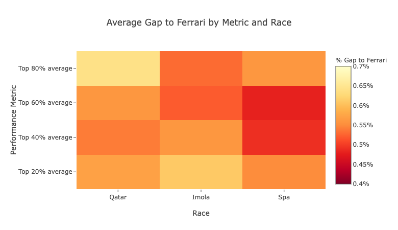 Qatar and Spa were very similar in terms of the gap to Ferrari, just 0.035% on average in it.
