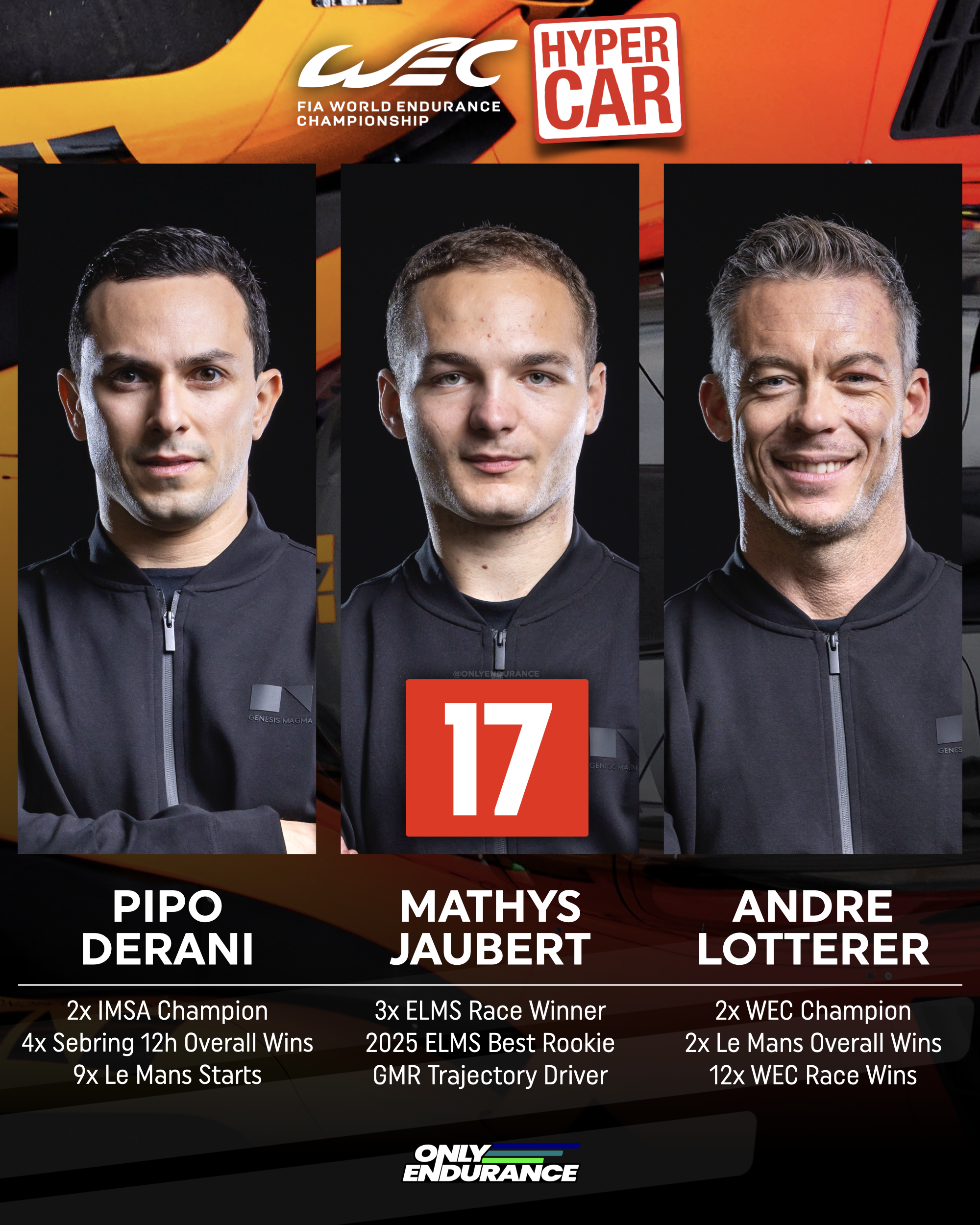 Genesis Magma Racing have confirmed the allocation of their six race drivers for their maiden WEC Hypercar season.