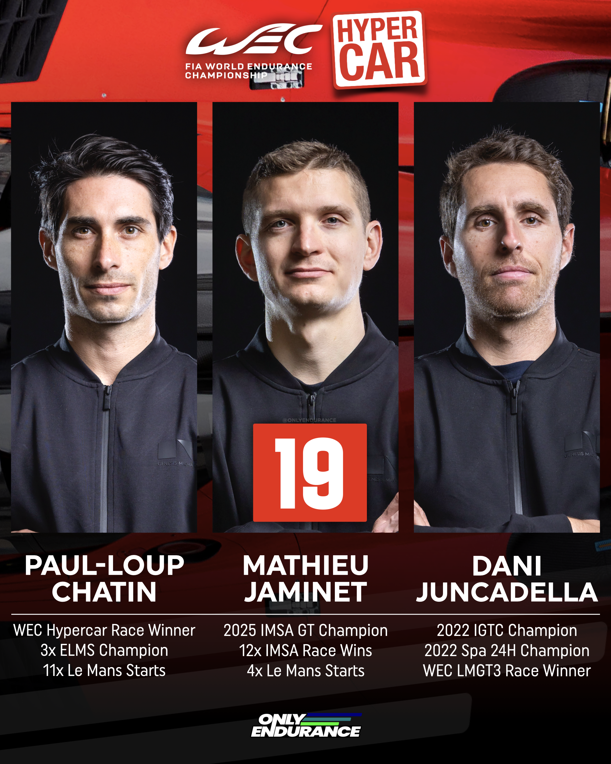 The #19’s lineup sizzles just at the sight, with an enticing combination with experience across the racing world.