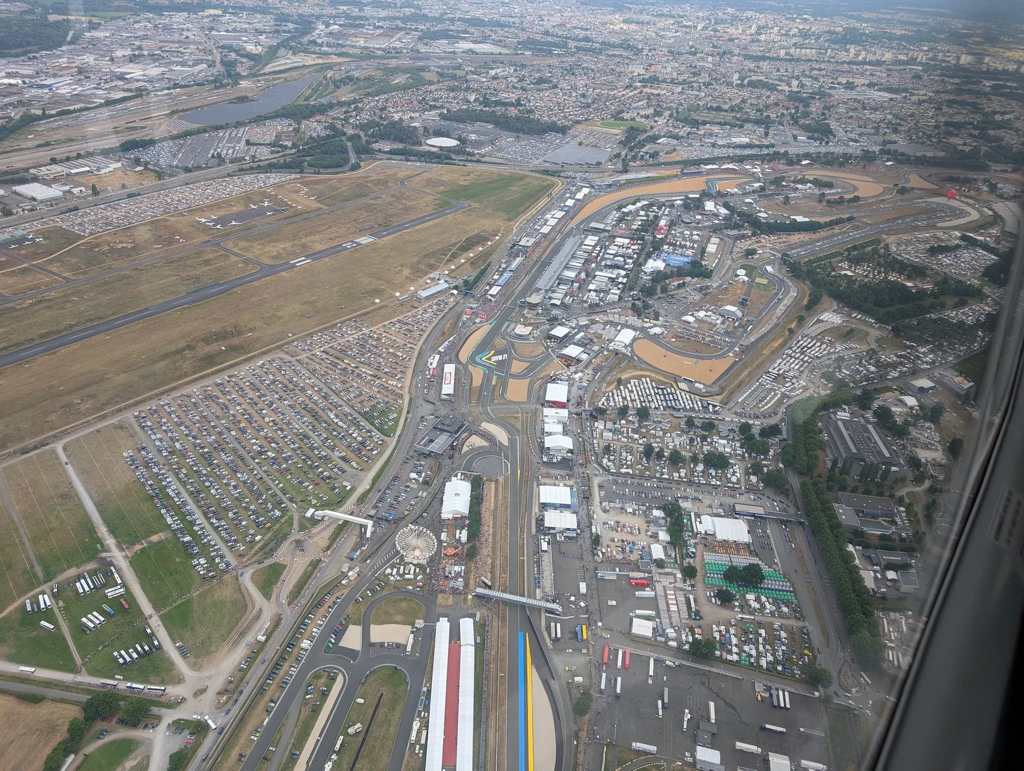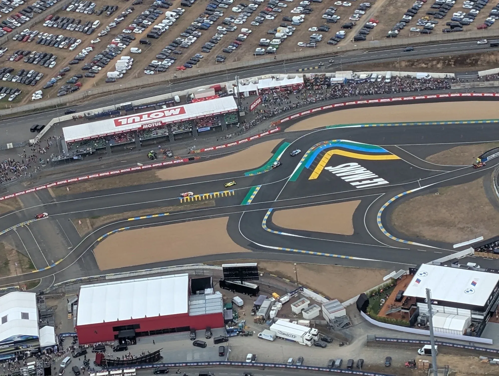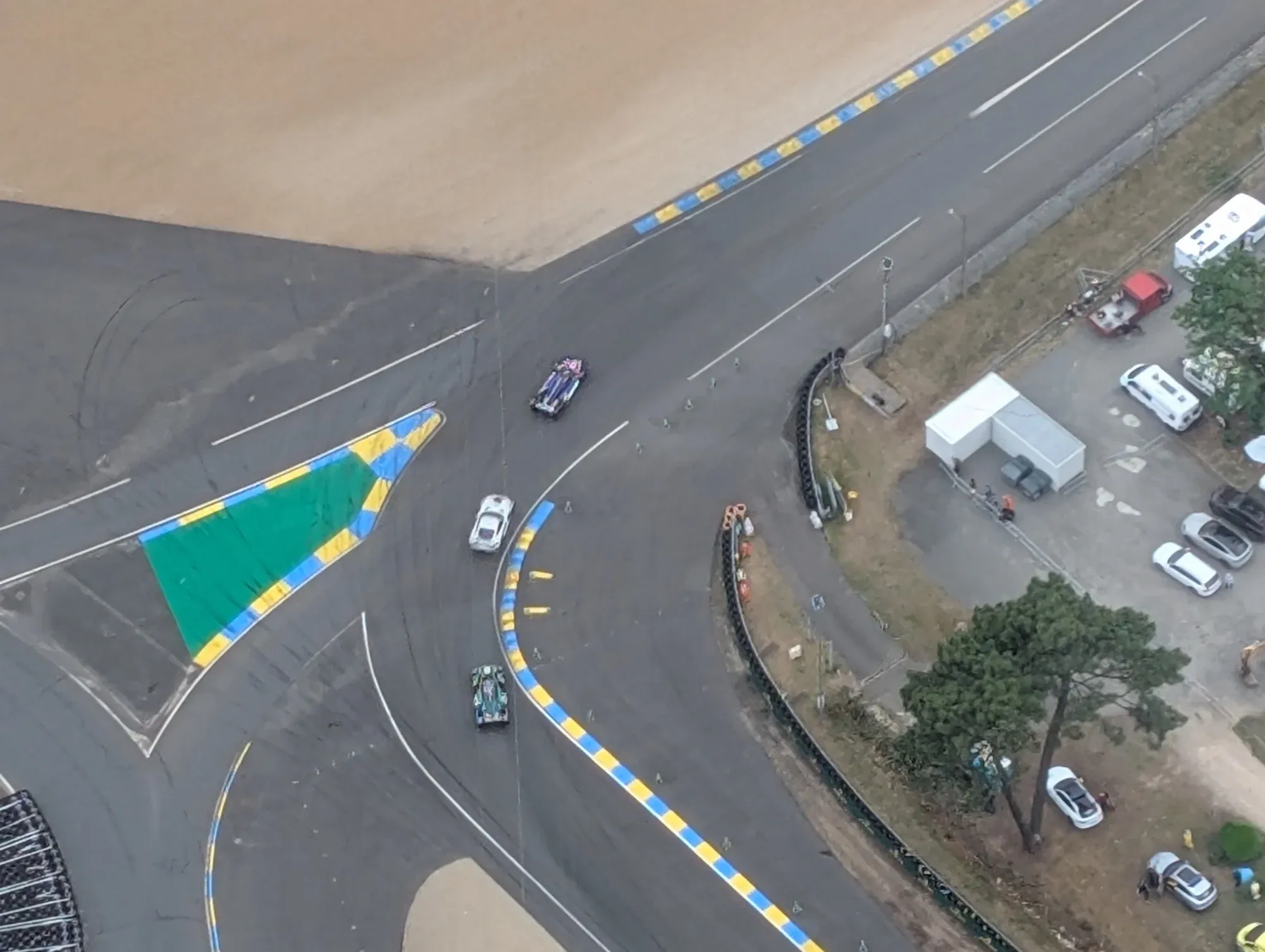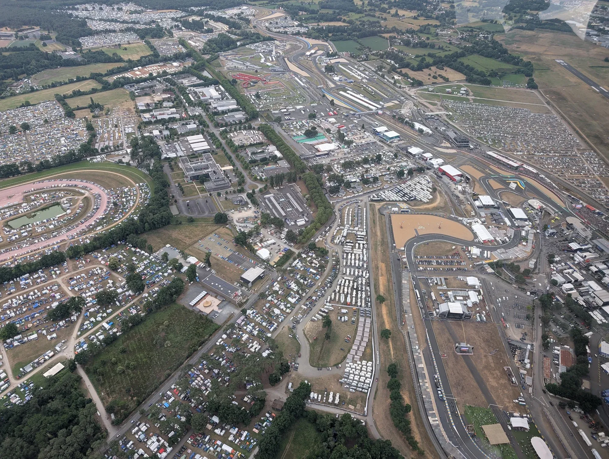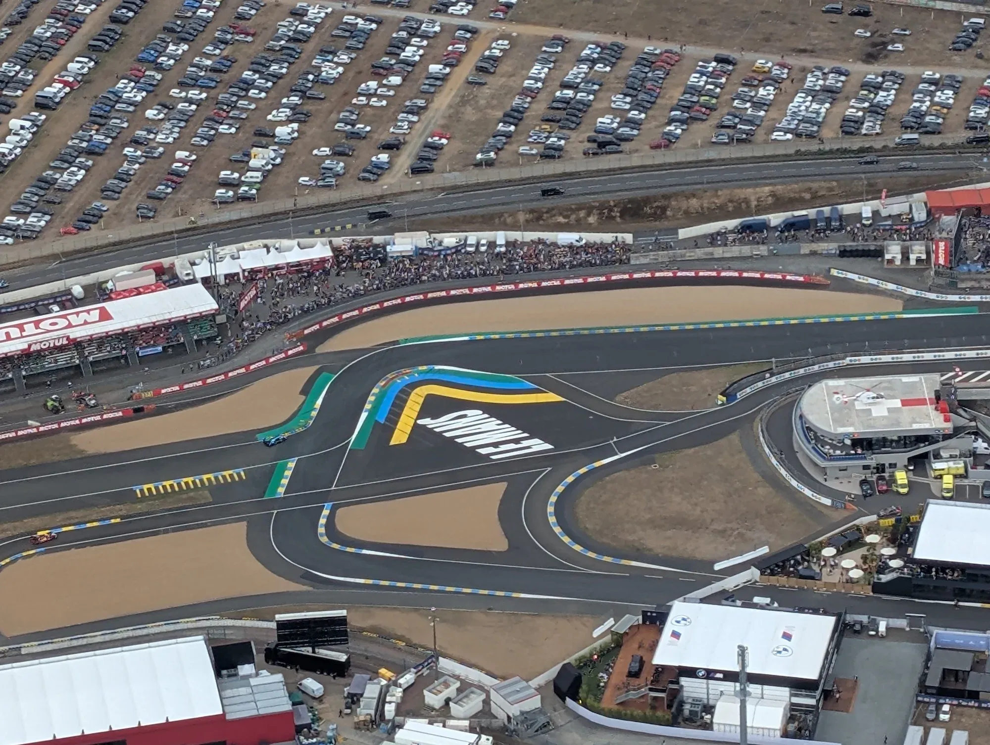 The Blimp ride really showed the scale of the track.The Marie-Marvingt stadium, where the ACO press conference is held every year.Want a go?The first chicane, rechristened 'Daytona chicane' after IMSA and ACO's partnership.The Mulsanne Straight, with the kink at the top of the image.The second chicane.A Corvette and McLaren navigate their way through the second chicane.Mulsanne Corner. Hitting the apex is important here, to get a good exit for the long run to Indianapolis.The roundabout at Mulsanne corner.The track stretching off into the distance, taken from Mulsanne corner. The grey area on drivers' right exiting Mulsanne Corner is the old signalling pits, no longer used.The run down to Porsche Curves, approaching the end of the lap.It was incredible to see the track from above.A very wide shot of the track, showing the first sector of the lap to Tertre Rouge.Looking backwards down the track towards Tertre Rouge, roughly above the first chicane.Our trip was over — we waved goodbye to the Blimp, off on another trip for more guests, invited by Goodyear.