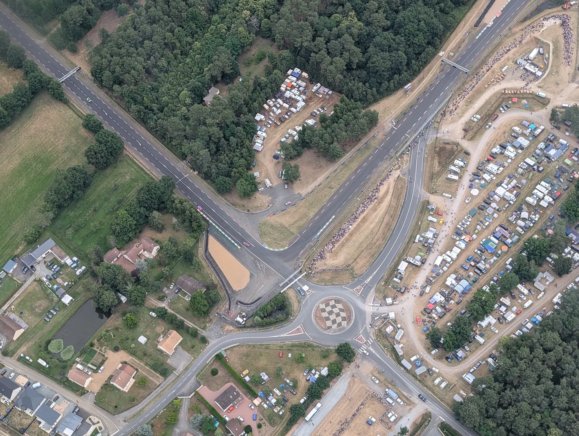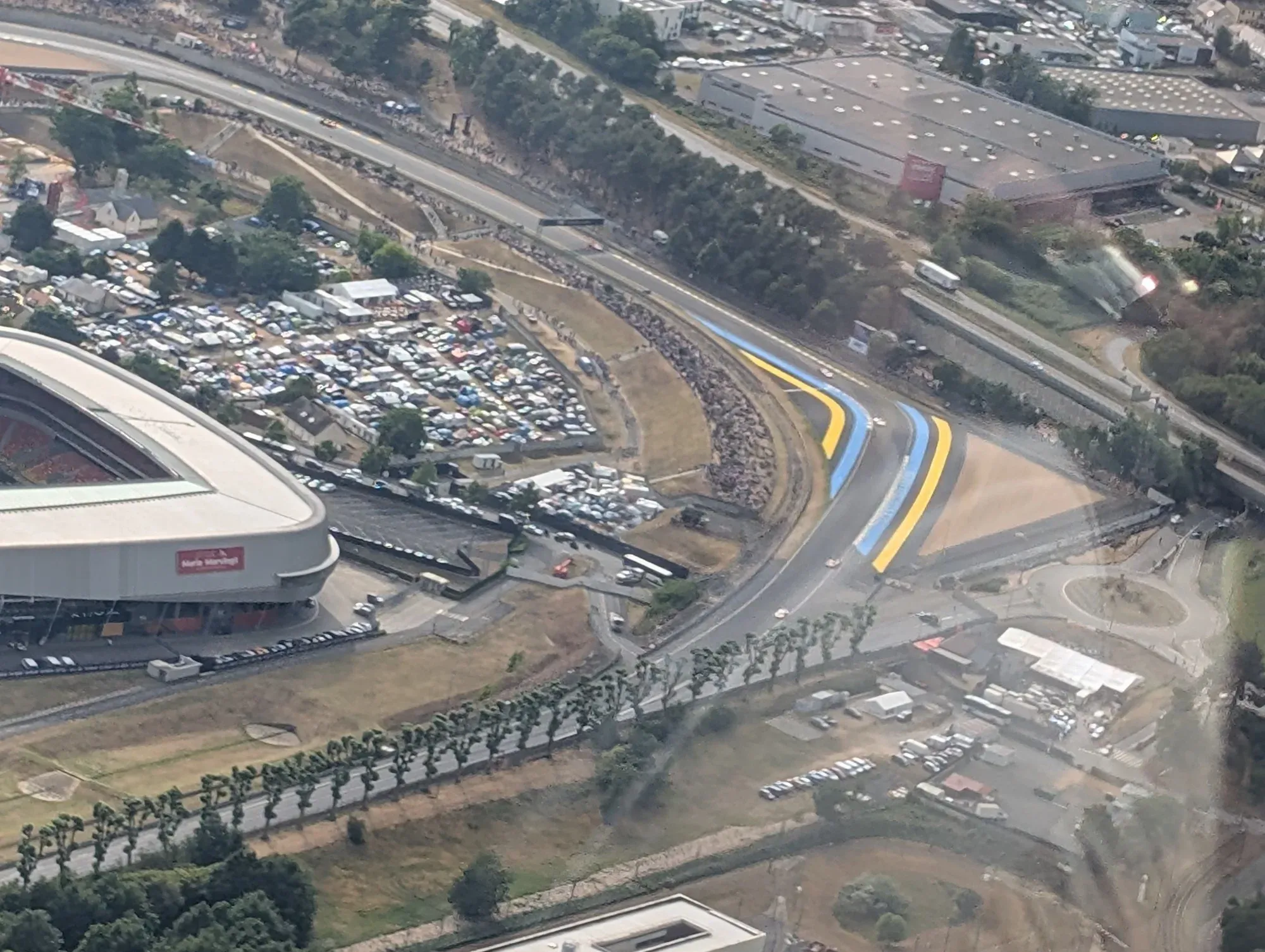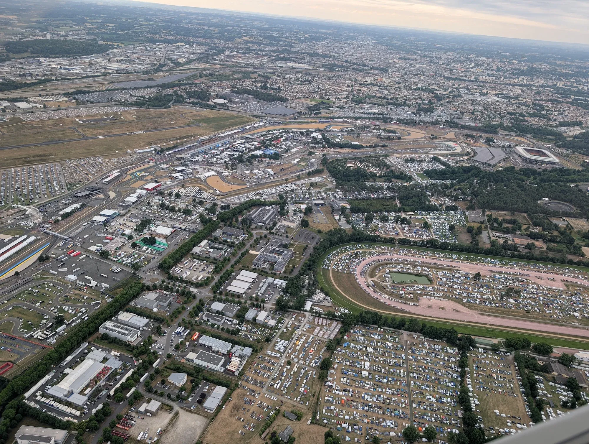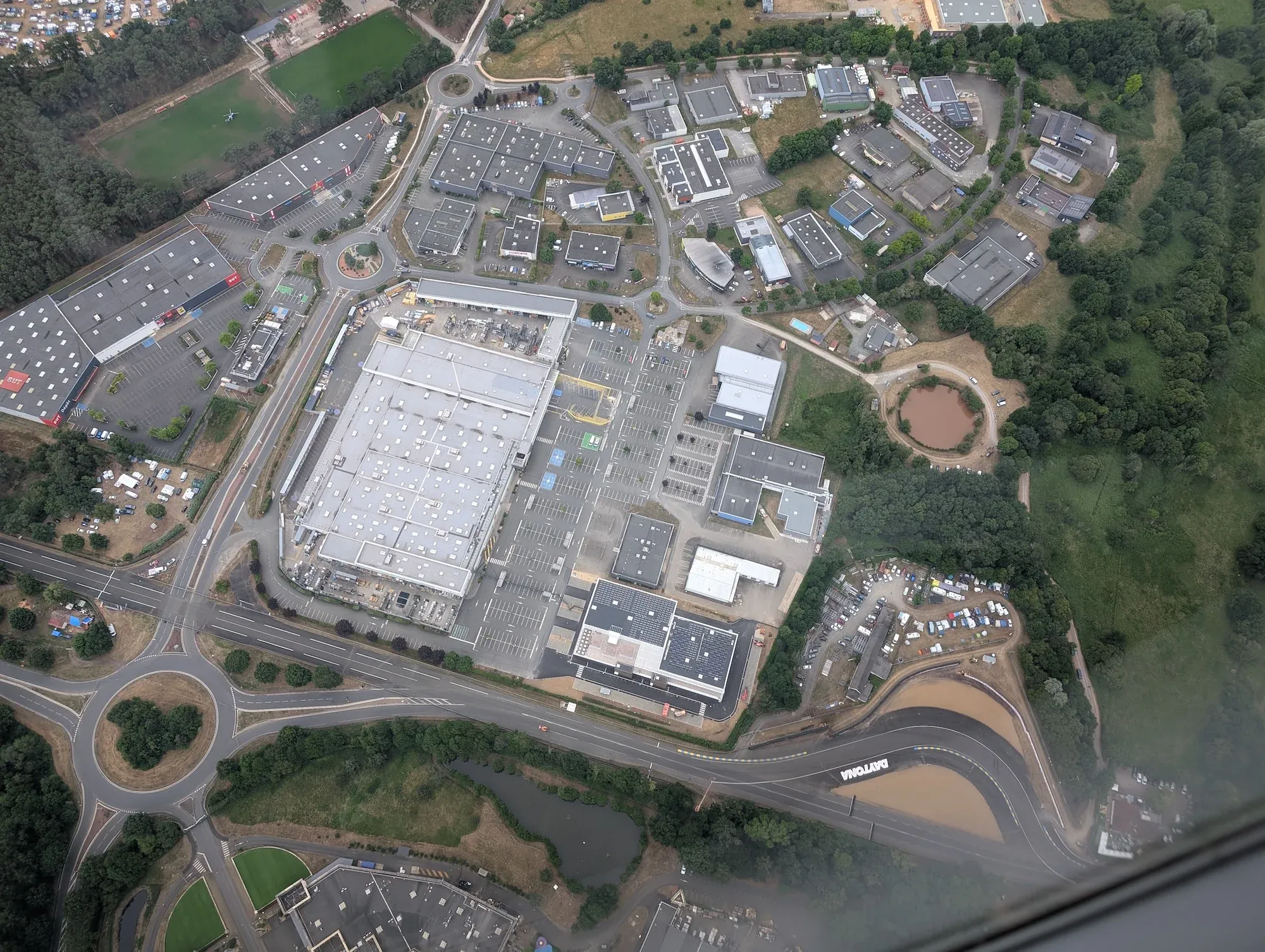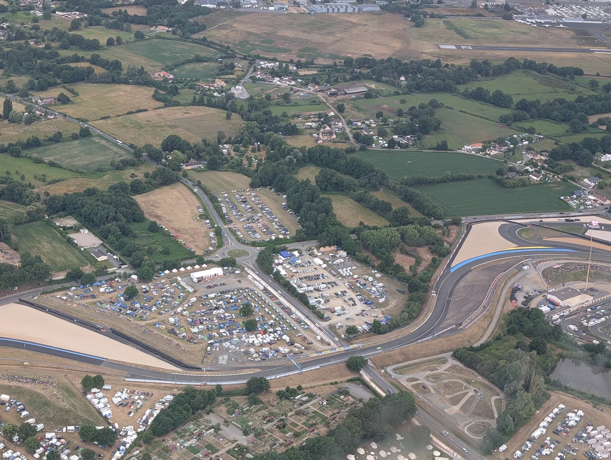 The Blimp ride really showed the scale of the track.The Marie-Marvingt stadium, where the ACO press conference is held every year.Want a go?The first chicane, rechristened 'Daytona chicane' after IMSA and ACO's partnership.The Mulsanne Straight, with the kink at the top of the image.The second chicane.A Corvette and McLaren navigate their way through the second chicane.Mulsanne Corner. Hitting the apex is important here, to get a good exit for the long run to Indianapolis.The roundabout at Mulsanne corner.The track stretching off into the distance, taken from Mulsanne corner. The grey area on drivers' right exiting Mulsanne Corner is the old signalling pits, no longer used.The run down to Porsche Curves, approaching the end of the lap.It was incredible to see the track from above.A very wide shot of the track, showing the first sector of the lap to Tertre Rouge.Looking backwards down the track towards Tertre Rouge, roughly above the first chicane.Our trip was over — we waved goodbye to the Blimp, off on another trip for more guests, invited by Goodyear.