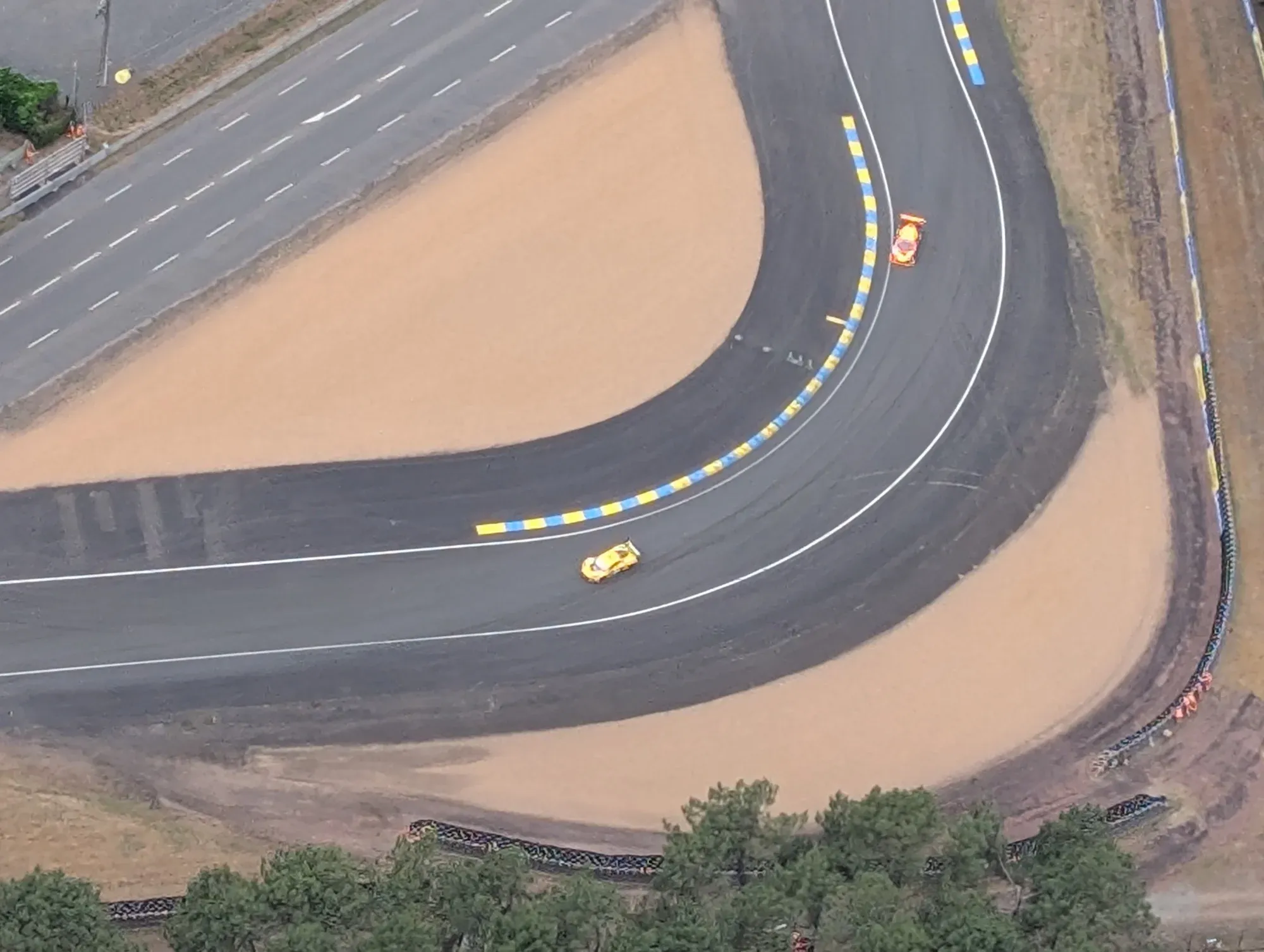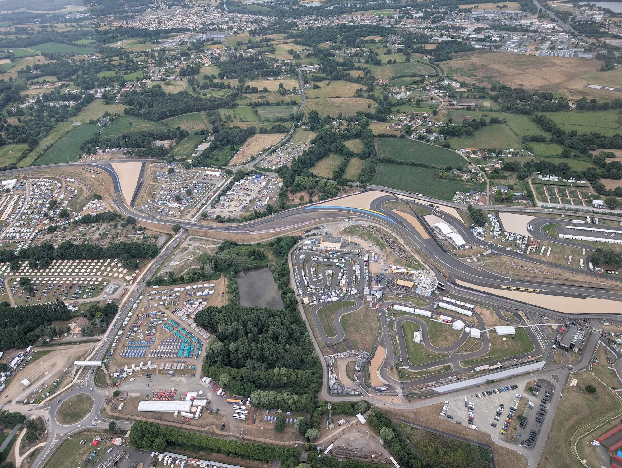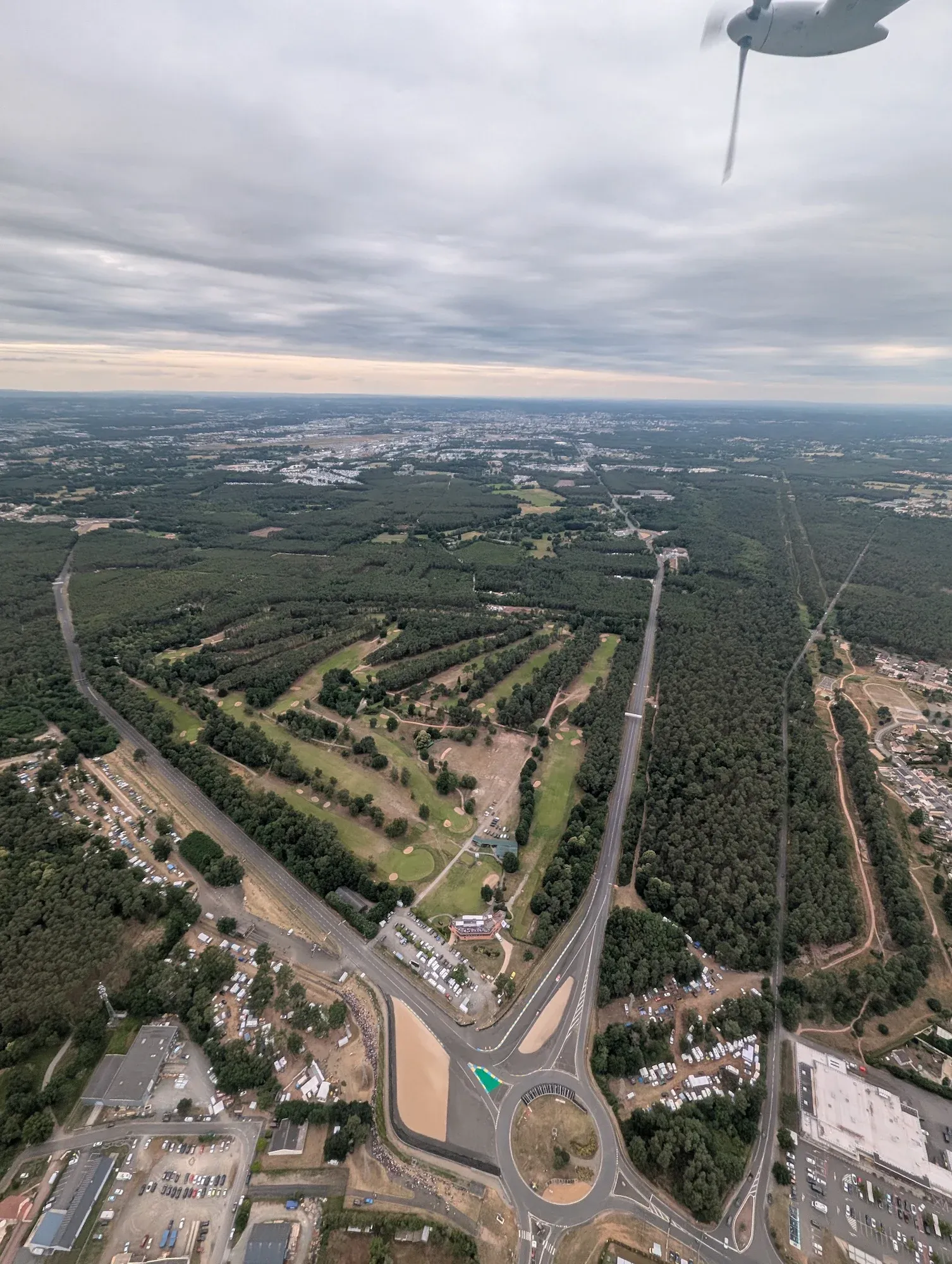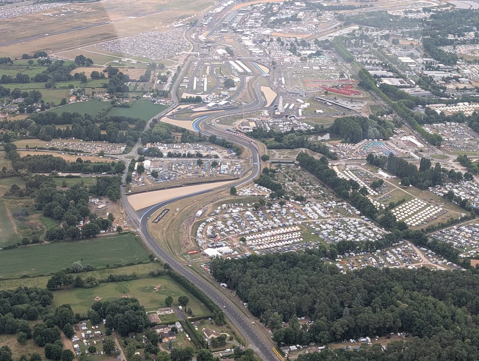 The Blimp ride really showed the scale of the track.The Marie-Marvingt stadium, where the ACO press conference is held every year.Want a go?The first chicane, rechristened 'Daytona chicane' after IMSA and ACO's partnership.The Mulsanne Straight, with the kink at the top of the image.The second chicane.A Corvette and McLaren navigate their way through the second chicane.Mulsanne Corner. Hitting the apex is important here, to get a good exit for the long run to Indianapolis.The roundabout at Mulsanne corner.The track stretching off into the distance, taken from Mulsanne corner. The grey area on drivers' right exiting Mulsanne Corner is the old signalling pits, no longer used.The run down to Porsche Curves, approaching the end of the lap.It was incredible to see the track from above.A very wide shot of the track, showing the first sector of the lap to Tertre Rouge.Looking backwards down the track towards Tertre Rouge, roughly above the first chicane.Our trip was over — we waved goodbye to the Blimp, off on another trip for more guests, invited by Goodyear.