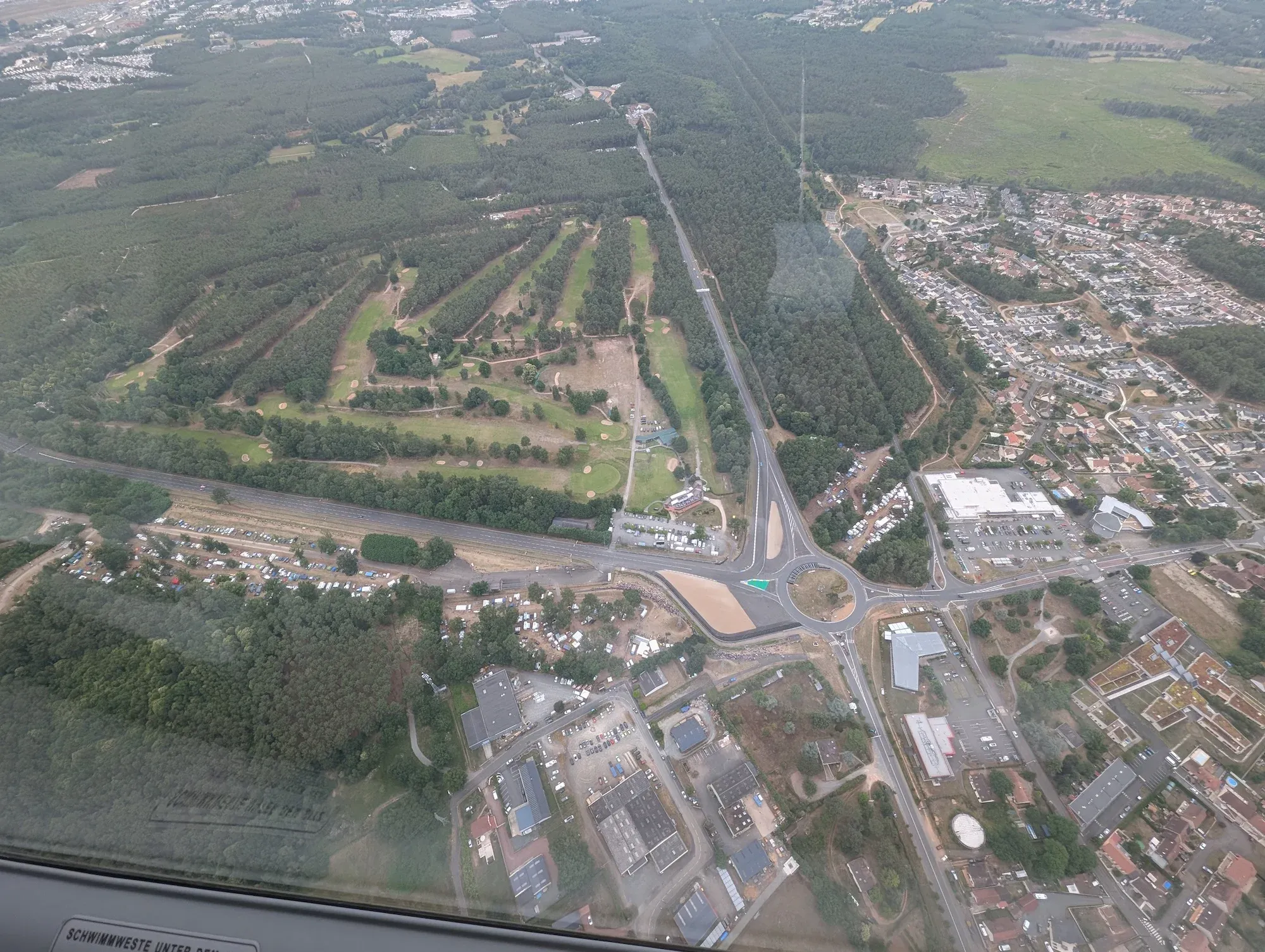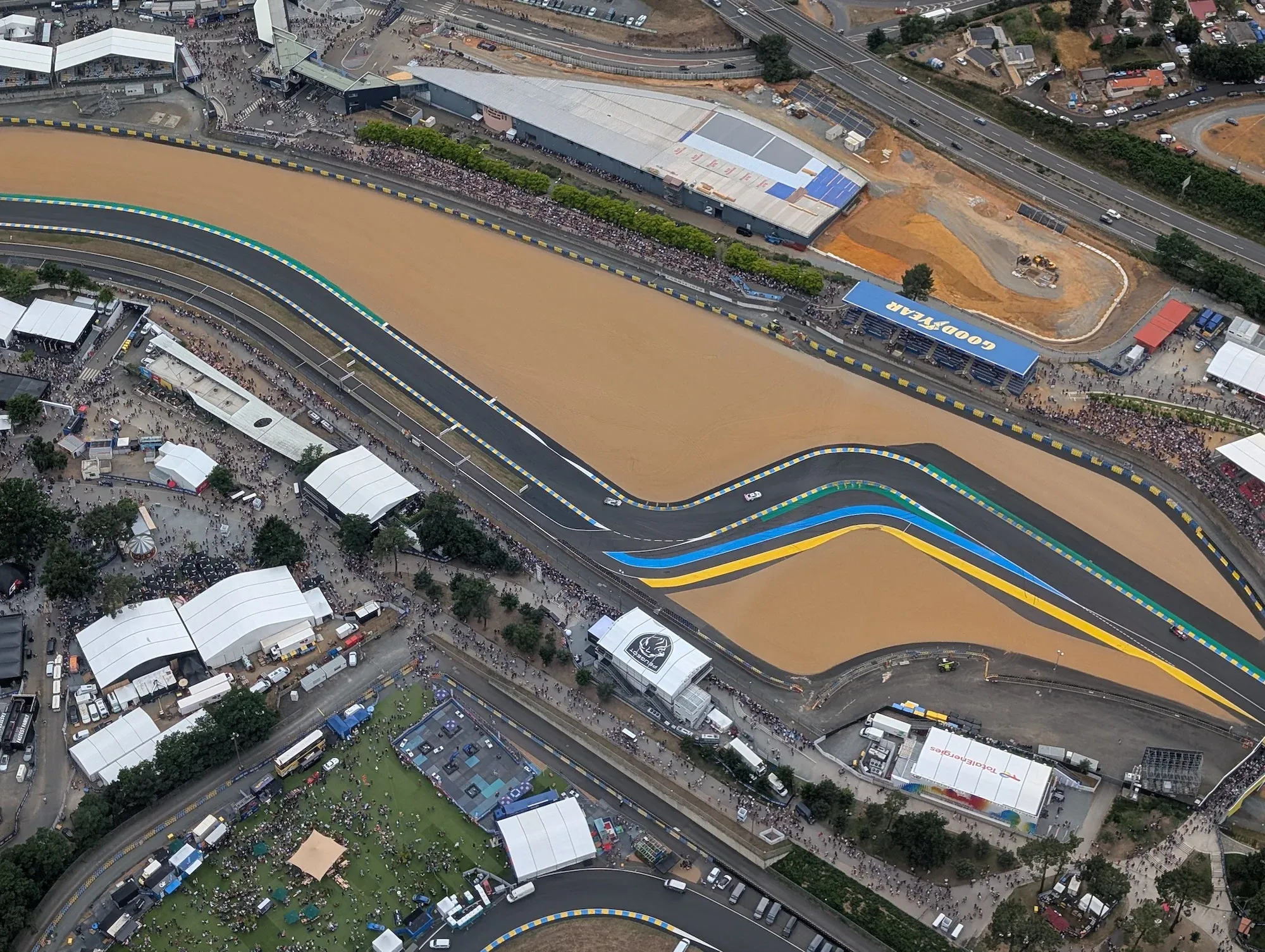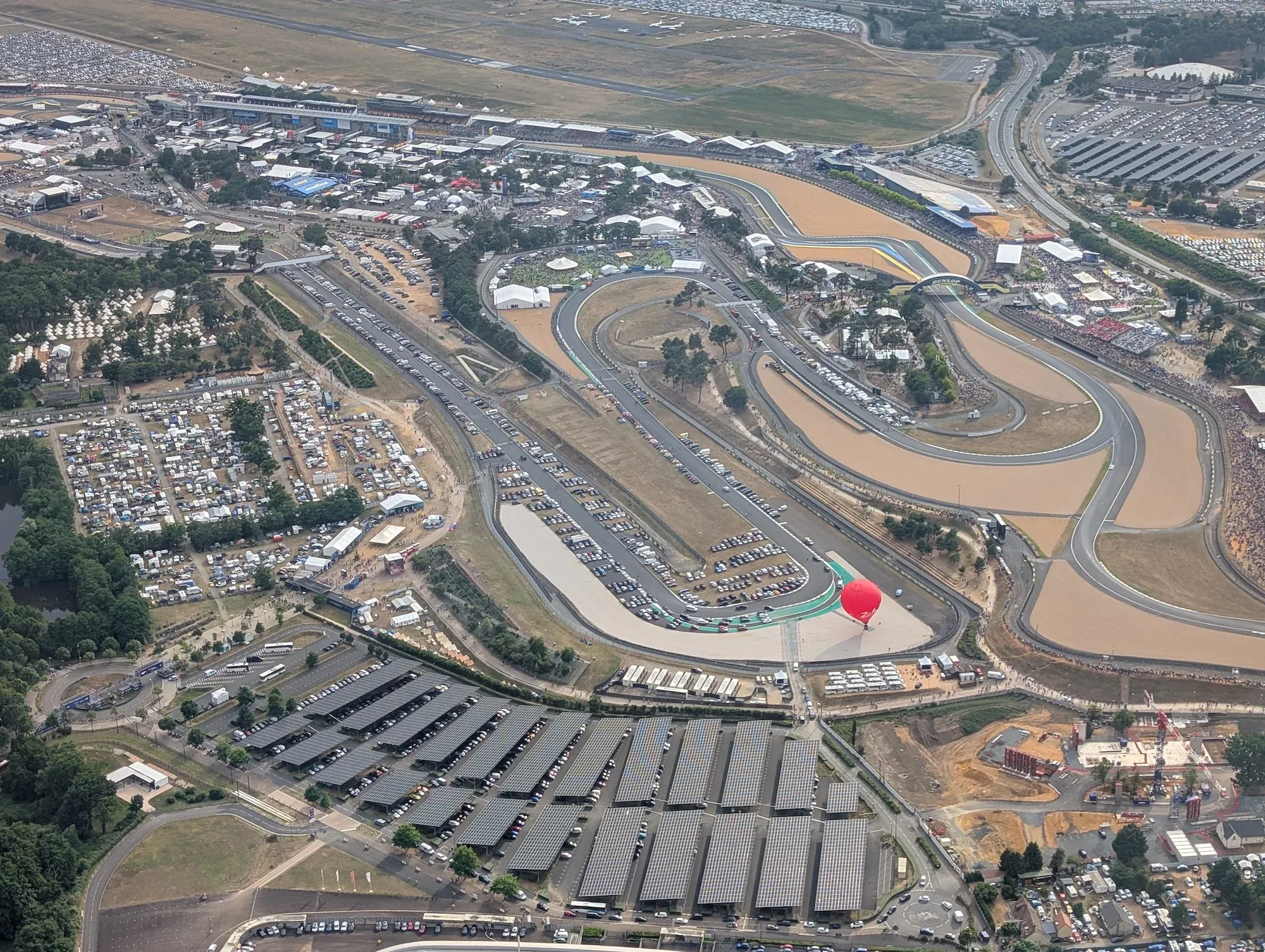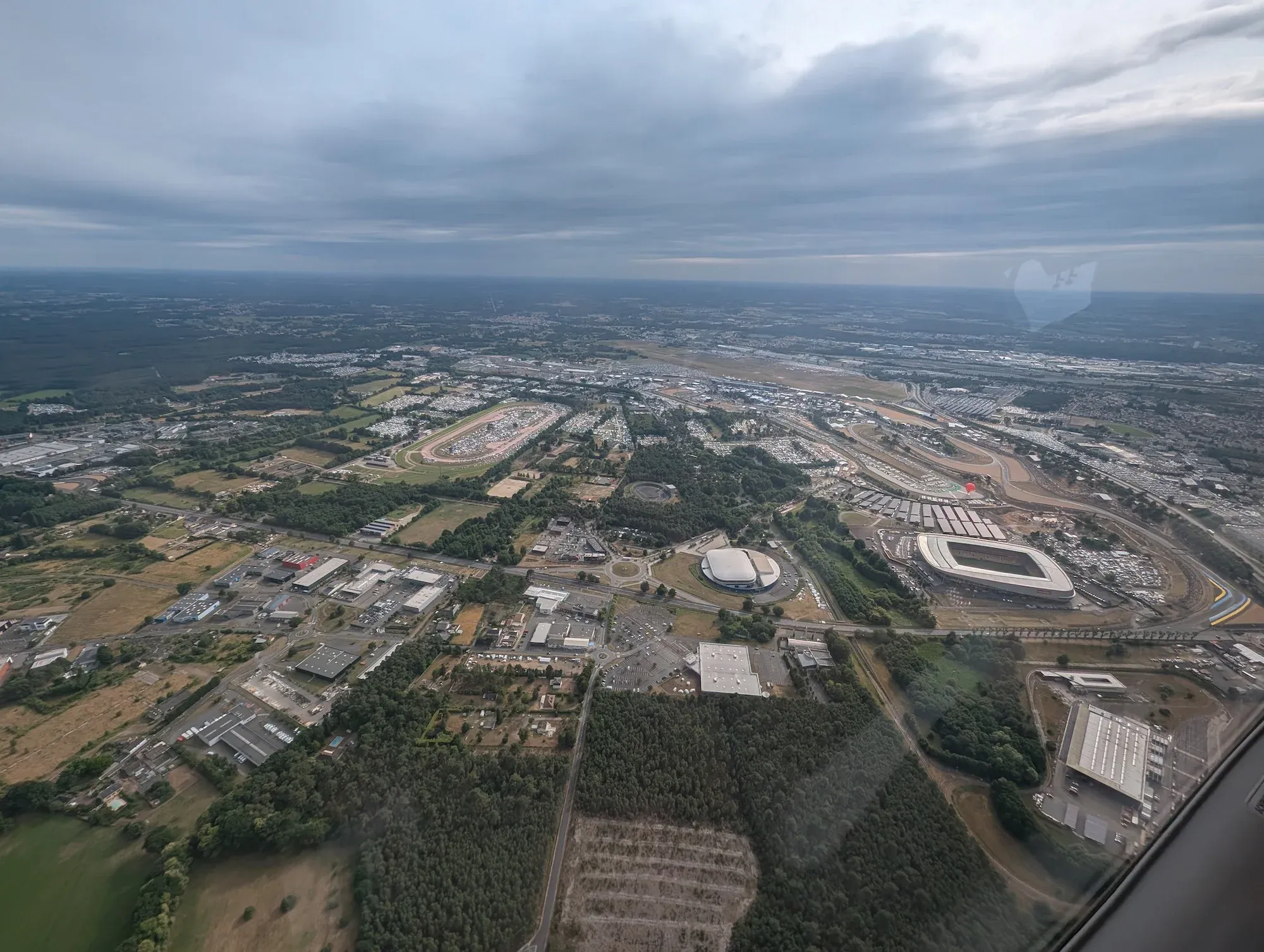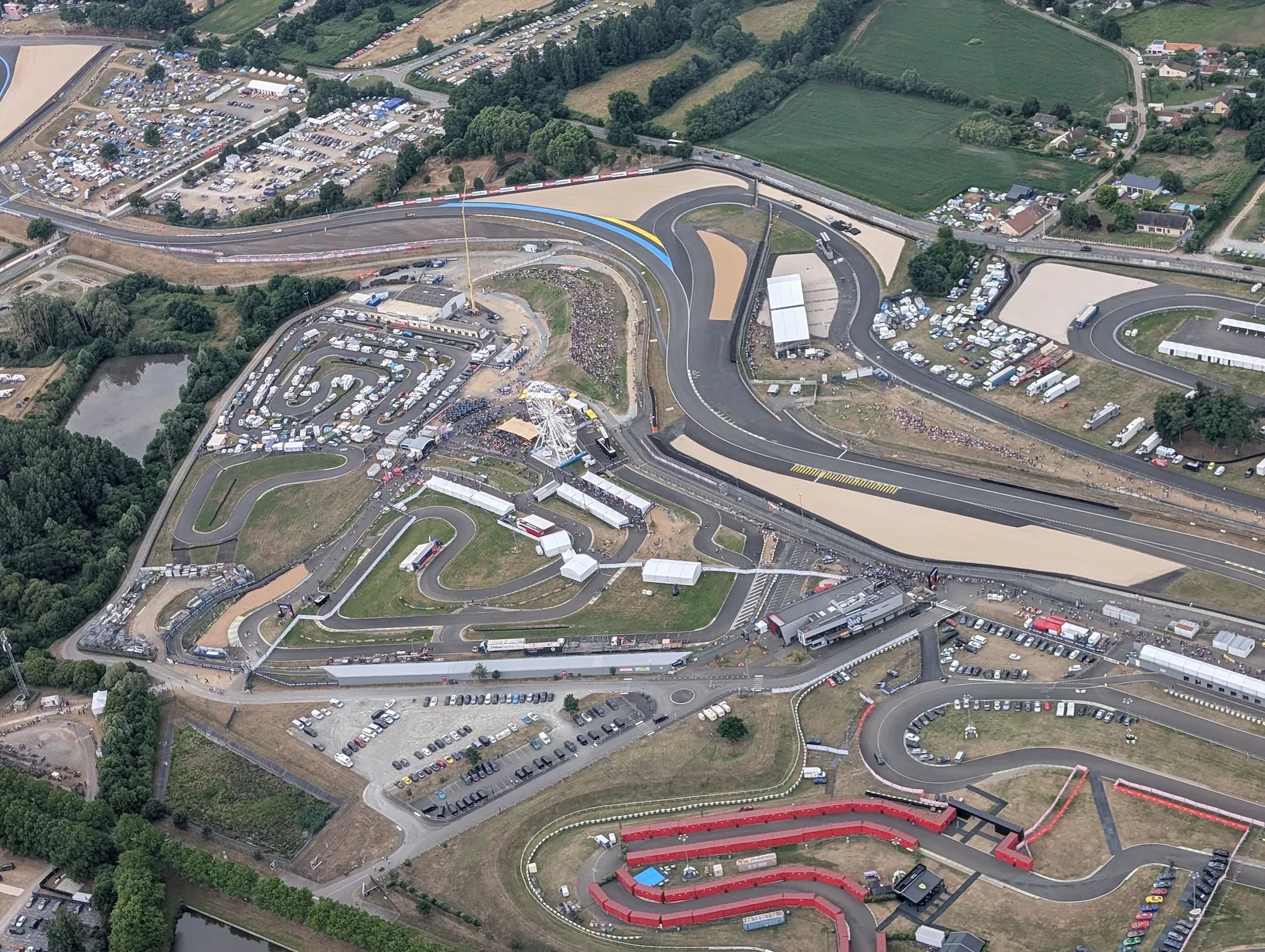 The Blimp ride really showed the scale of the track.The Marie-Marvingt stadium, where the ACO press conference is held every year.Want a go?The first chicane, rechristened 'Daytona chicane' after IMSA and ACO's partnership.The Mulsanne Straight, with the kink at the top of the image.The second chicane.A Corvette and McLaren navigate their way through the second chicane.Mulsanne Corner. Hitting the apex is important here, to get a good exit for the long run to Indianapolis.The roundabout at Mulsanne corner.The track stretching off into the distance, taken from Mulsanne corner. The grey area on drivers' right exiting Mulsanne Corner is the old signalling pits, no longer used.The run down to Porsche Curves, approaching the end of the lap.It was incredible to see the track from above.A very wide shot of the track, showing the first sector of the lap to Tertre Rouge.Looking backwards down the track towards Tertre Rouge, roughly above the first chicane.Our trip was over — we waved goodbye to the Blimp, off on another trip for more guests, invited by Goodyear.
