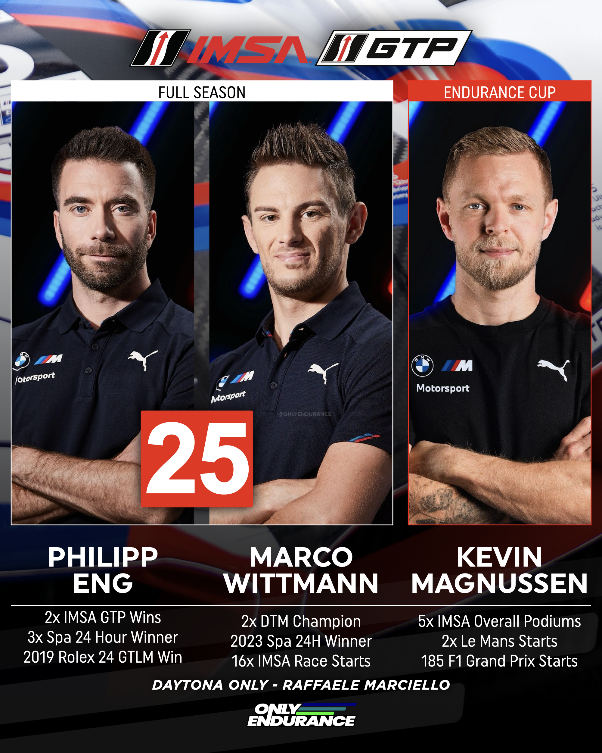 Going in the other direction is GTP race-winner Philipp Eng, who will partner Marco Wittmann in the #25 for the full season, the duo previously sharing a car during 2023 Endurance Cup events.